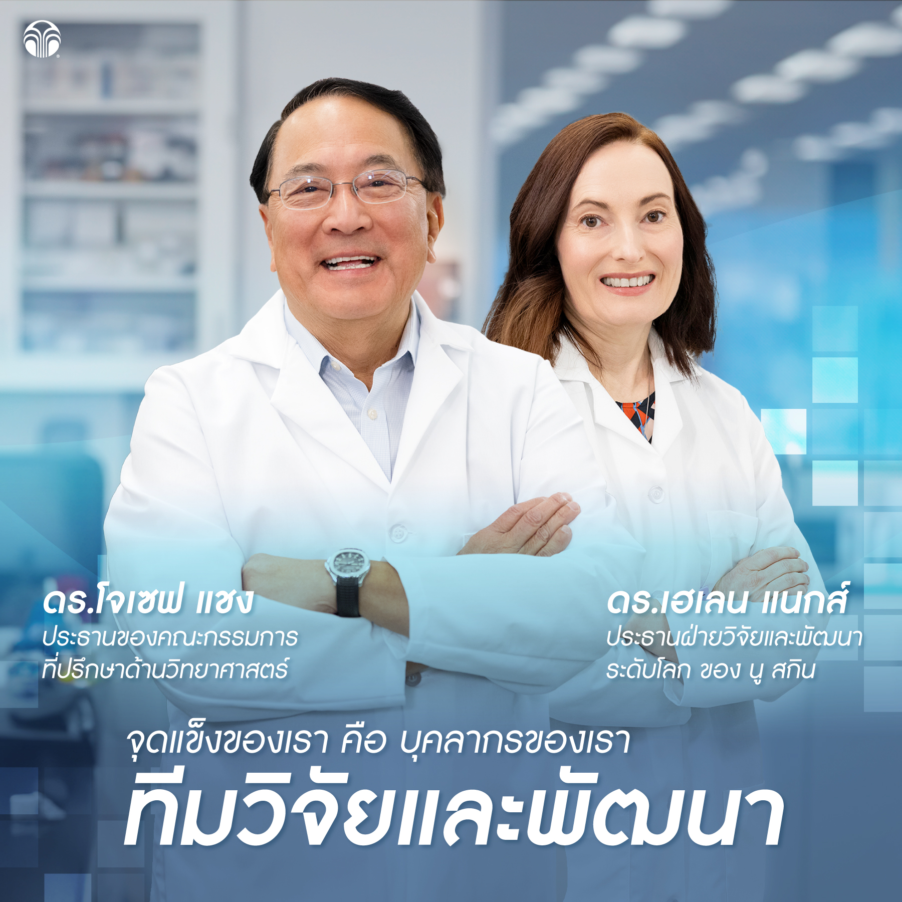 เครื่องยนต์ทางวิทยาศาสตร์ของเรายังคงแข็งแกร่งในปัจจุบันและด้วยห้องปฏิบัติการวิจัยและพัฒนาแห่งใหม่ของเรา นู สกินพร้อมที่จะให้บริการโซลูชั่นด้านสุขภาพและการดูแลผิวพรรณที่ครอบคลุมสำหรับอุตสาหกรรมต่อต้านวัยต่อไป