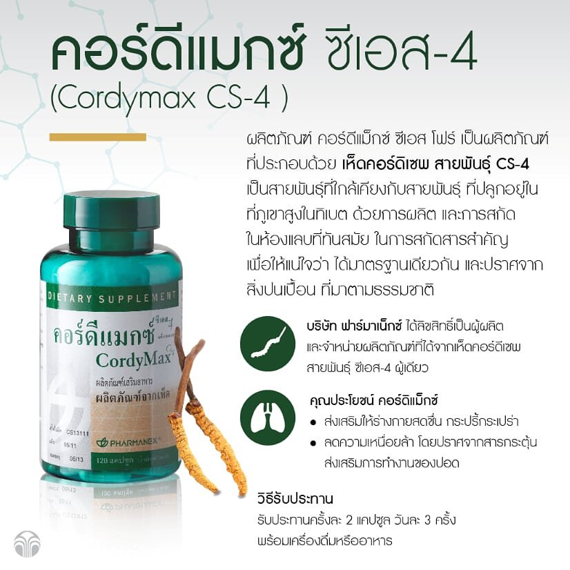 ผลิตภัณฑ์เสริมอาหารสิทธิบัตร คอร์ดีแมกซ์ ซีเอส-4 (CordyMax CS-4) ถูกพัฒนามาจากการ เพาะพันธุ์เห็ดถั่งเช่าในประเทศจีน และผ่านการวิจัยทางวิทยาศาสตร์ มายาวนานกว่า 15 ปี จนได้เป็นสายพันธุ์ที่มีประโยชน์ต่อสุขภาพ เทียบเท่ากับสายพันธุ์เดิมที่พบในที่ราบสูงทิเบต นั่นคือ เห็ดถั่งเช่า สายพันธุ์ ซีเอส-4 (Cordyceps Sinensis CS-4) โดยนู สกิน (Nu Skin) ได้รับเอกสิทธิจากรัฐบาลจีนให้จำหน่ายทั่วโลกแต่เพียงผู้เดียว
