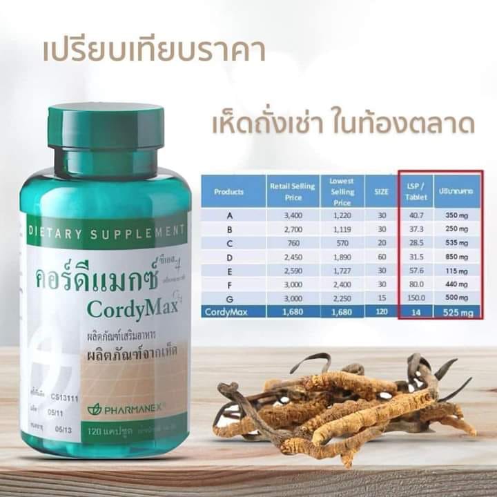 * ส่วนผสมทั้งหมด: เห็ดคอร์ดีเซพ ไซเนนซิส 525 มิลลิกรัม
