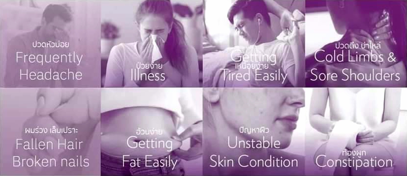 เจ็บป่วยง่าย แขนขาเย็นและเจ็บไหล่ เหนื่อยง่าย สภาพผิวไม่ดี อ้วนง่าย และ ท้องผูก