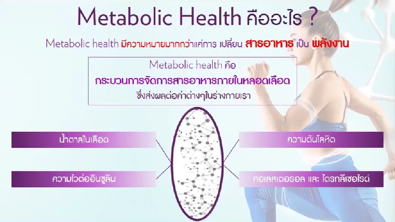 สุขภาพการเผาผลาญอาหารนั้นไม่ใช่แค่เพียงการเปลี่ยนอาหารให้เป็นพลังงานเท่านั้น มันเป็นชีวเคมีในร่างกายของเราในเครือข่ายการเผาผลาญที่มีผลกระทบต่อตัวบ่งชี้ที่สำคัญ เช่น ความไวของอินซูลิน, คอเลสเตอรอล & ไตรกลีเซอไรด์, ความดันโลหิต และ น้ำตาลในเลือด