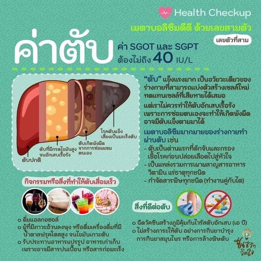 ค่าตับ (ค่า SGOT และ SGPT) ต้องไม่ถึง 40 IU/L