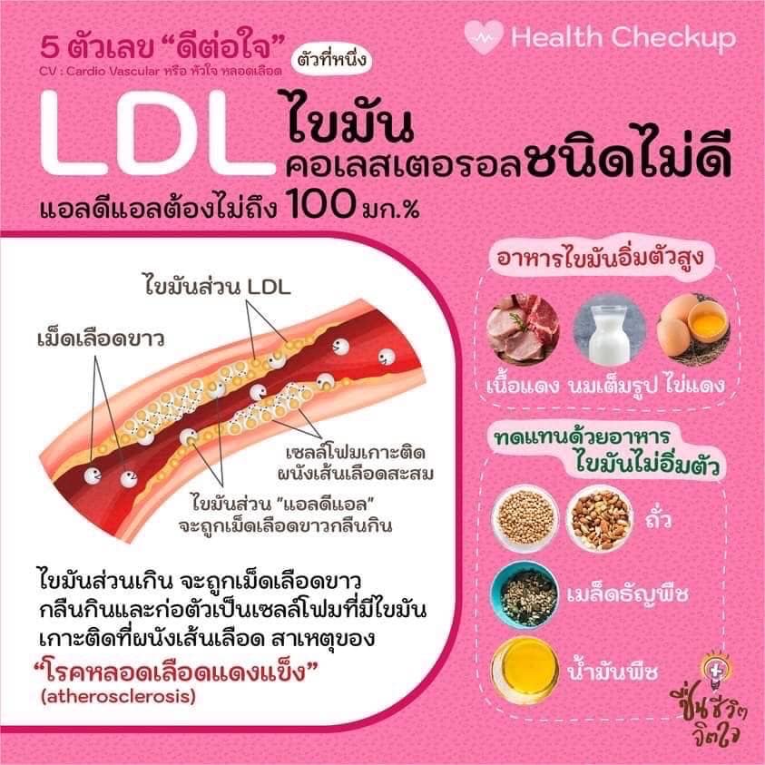 ไขมันคอเลสเตอรอล ชนิดไม่ดี LDL ต้องไม่ถึง 100 มก.%