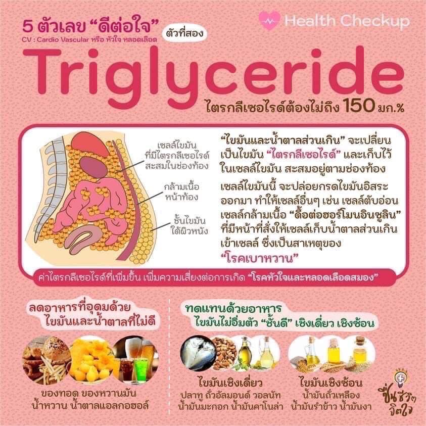 ไตรกลีเซอไรด์ (Triglyceride) ต้องไม่ถึง 150 มก.%