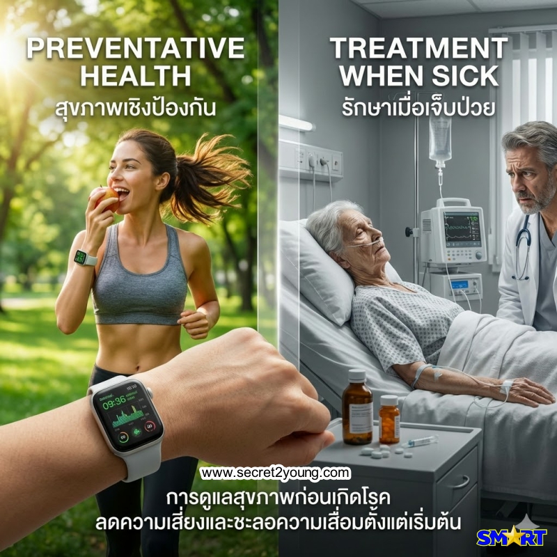 แนวคิดการดูแลสุขภาพ ก่อนเกิดโรค โดยมุ่งลดความเสี่ยงและชะลอความเสื่อมตั้งแต่ระยะเริ่มต้น แทนการรอรักษาเมื่อเจ็บป่วยแล้ว