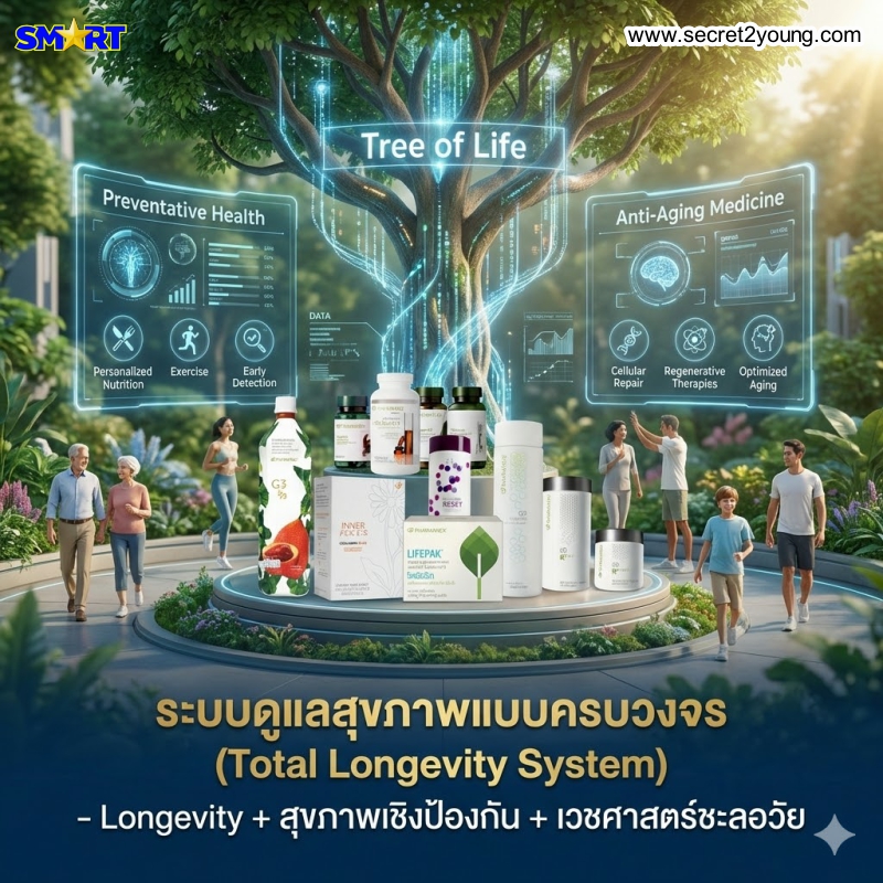 การดูแลสุขภาพในแนวทาง Longevity (อายุยืนยาวแบบมีคุณภาพ) ไม่ใช่แค่การรักษาโรคเมื่อเกิดขึ้นแล้ว แต่คือการ "ดูแลเชิงรุก" เพื่อรักษาการทำงานของร่างกายในระดับเซลล์และยีน ซึ่งสอดคล้องกับปรัชญาของ Nu Skin ผ่านแบรนด์ ageLOC และ Pharmanex ดังนี้