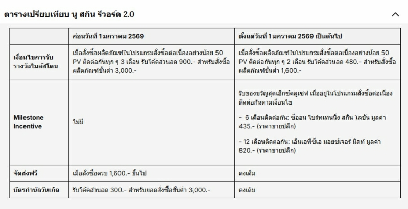 เริ่ม 1 มกราคม 2569 นี้ พบกับรางวัลที่ใหญ่กว่าเดิม โปรโมชั่นที่คุ้มกว่าเดิม และสิทธิประโยชน์พิเศษ สำหรับสมาชิกคนพิเศษกับ นู สกิน รีวอร์ด 2.0