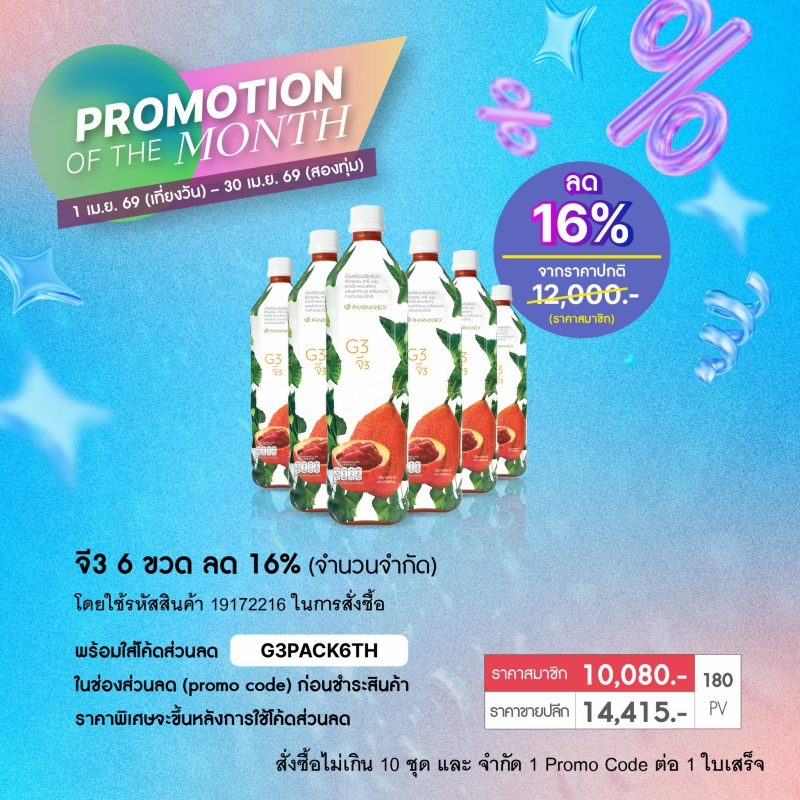 ช้อปตอนนี้ G3 จำนวน 6 ขวด ลด 16%