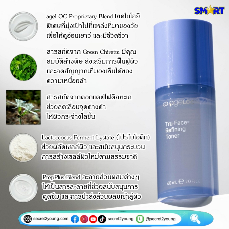 - เพื่อประสิทธิภาพสูงสุด ควรใช้ร่วมกับผลิตภัณฑ์ในกลุ่ม เอจล็อค ทรู เฟซ (ageLOC Tru Face Line)