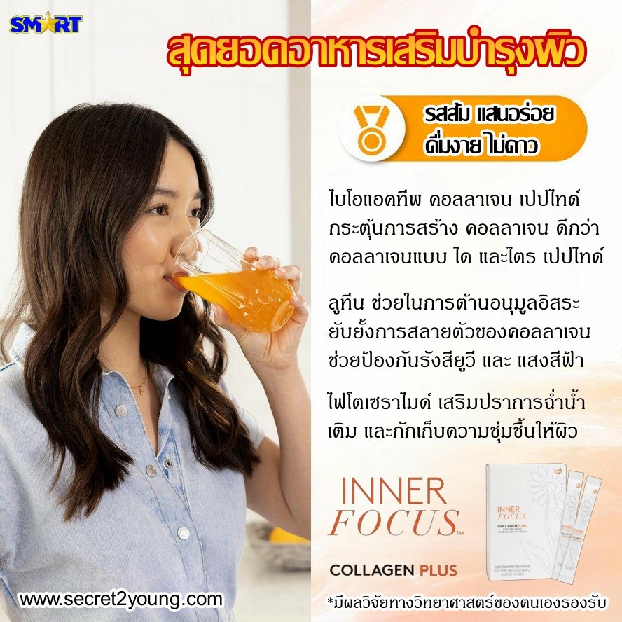Inner Focus Collagen Plus [อินเนอร์ โฟกัส คอลลาเจน พลัส] : นวัตกรรมคอลลาเจนที่พิสูจน์แล้วว่าไม่เพียงส่งผลต่อความยืดหยุ่นของผิว แต่ยังช่วยเพิ่มค่า SCS ได้สูงถึงระดับสูงสุดหลังการบริโภคต่อเนื่อง 4 เดือน
