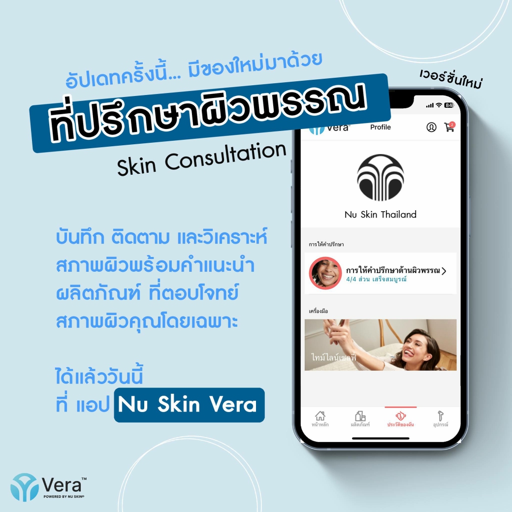 เครื่องมือล่าสุดจาก นู สกิน Vera Skin Consultant App ที่ให้คำปรึกษาด้านผิวพรรณ ตอบโจทย์ด้วยโปรแกรมอันชาญฉลาด สามารถวิเคราะห์ผิว ช่วยให้คุณเข้าใจความต้องการของผิวคุณได้ดียิ่งขึ้น ใช้งานง่าย สะดวกสบายเพียงแค่มีมือถือ และยังแนะนำผลิตภัณฑ์ที่ดีที่สุดให้กับผิวของคุณด้วย