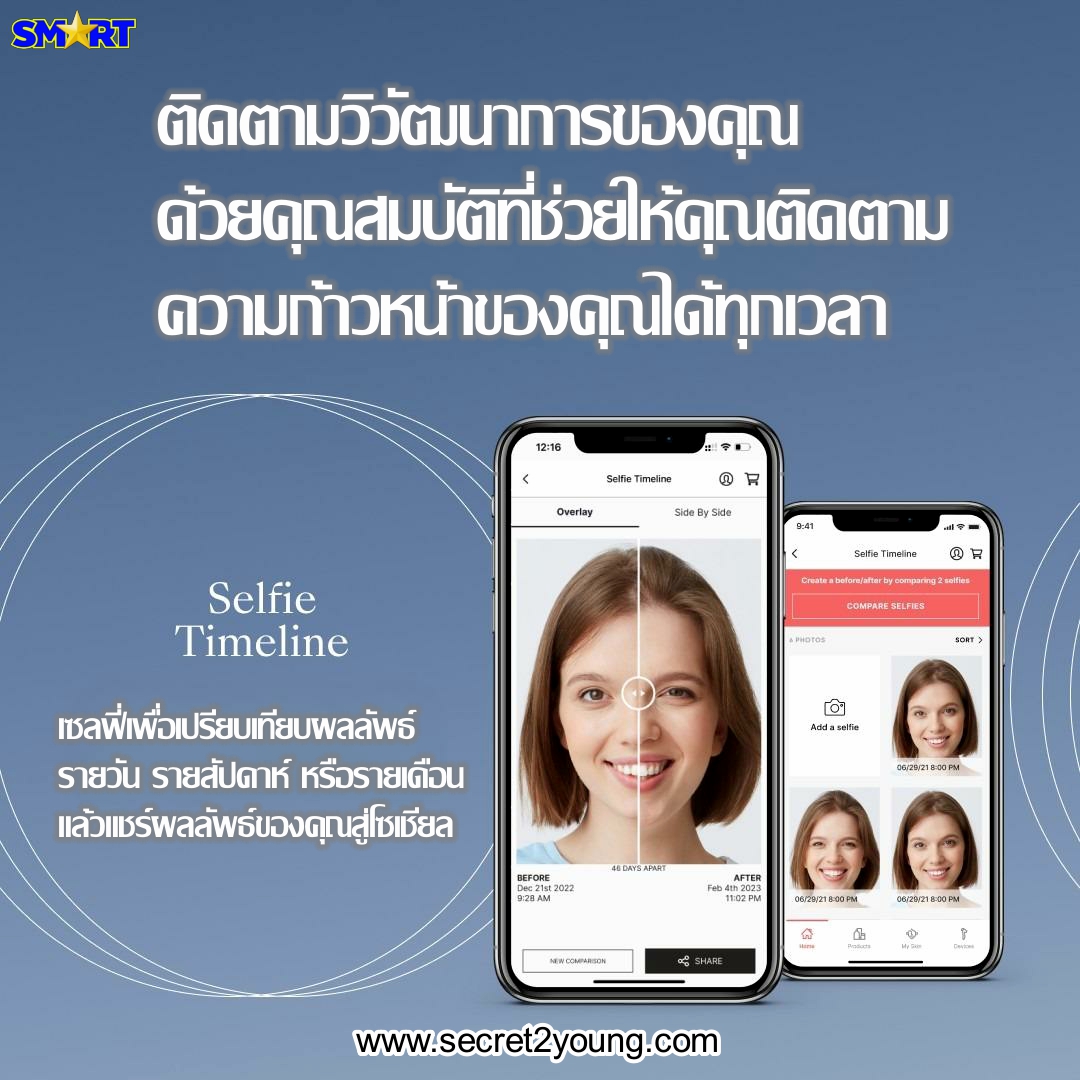 Vera จึงจัดให้ด้วยฟีเจอร์ Selfie Timeline คุณสามารถติดตามเส้นทางการดูแลผิวของคุณผ่านชุดภาพถ่ายก่อนและหลัง - ไม่ว่าจะเป็นสัปดาห์หรือเดือน ทำให้คุณเห็นถึงผลลัพธ์สกินแคร์ที่ใช้ได้อย่างชัดเจน พร้อมแชร์สู่ Social Media ได้อย่างง่ายดาย มันน่าทึ่งใช่ไหมล่ะ?